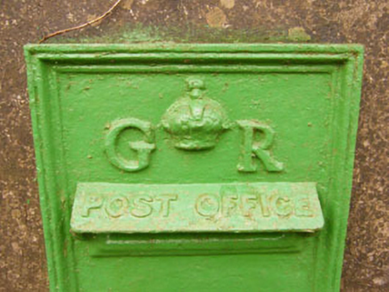 This fine post box, with its well-cast detailing, serves as an excellent example of the high quality cast-iron street furniture were was made during the late nineteenth and early twentieth centuries. The royal cipher of King George is a reminder of a time when Ireland was still part of the United Kingdom.