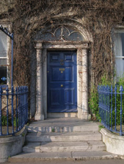 This elegant Georgian town house occupies a prominent site on the main street in Kinsale with views over the harbour and the south of the town. The most attractive features of the house are restricted to those elevations that are most visible from the street. These include the timber sliding sash windows, decorated sills, tooled limestone door surround, steps and plinth. Together with other neighbouring buildings this house contributes positively to the historic streetscape.