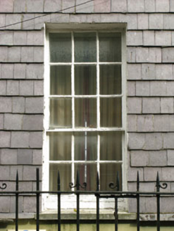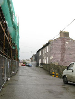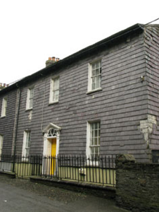 Semi-detached three-bay two-storey over basement house, built c.1810, having three-storey elevation to rear (north-east) with bow-fronted oriel. Lean-to recent addition to basement level of side (south-east) elevation. Pitched slate roof having rendered overhanging eaves with timber corbels, rendered chimneystack, cast-iron and uPVC rainwater goods. Hanging slate walls to ground and first floors with flared base to all walls. Rendered plinth and basement area to front elevation. Diminishing square-headed window openings with replacement rendered sills to front and rear elevations. Nine-over-six pane timber sliding sash windows to ground floor, six-over-six pane timber sliding sash windows to first floor. Six-over-six pane timber sliding sash window and replacement casement window to front basement area. Round-headed stairwell window opening to rear (north-east) elevation having replacement nine-over-six pane timber sliding sash window with overlight to upper sash. Square-headed tri-partite window opening to oriel having nine-over-six pane timber sliding sash windows. Twelve-over-eight pane timber sliding sash window to rear elevation. Round-headed door opening to front elevation within timber panelled doorcase comprising panelled pilasters, consoles and open bedded pediment. Timber panelled door with brass door furniture and fanlight. Pair of wrought-iron boot scrapes to limestone approach. Limestone steps with cast-iron railings to basement level. Rubble limestone plinth with rendered coping and cast-iron railing enclosing basement area with cobbled paving surface to roadside. Attached rubble stone wall to south-east having cast-iron post box inserted in wall with VR insignia.