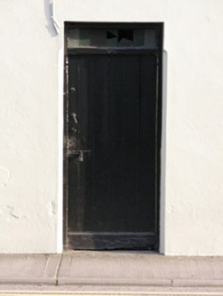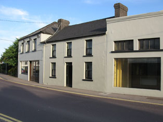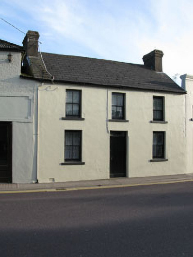 Attached three-bay two-storey house, built c.1850. Pitched artificial slate roof with rendered chimneystacks, eaves course and cast-iron rainwater goods. Rendered walls. Square-headed window openings with tooled limestone sills, having two-over-two pane timber sliding sash windows. Square-headed door opening with timber battened door and overlight. Fronting directly onto street.