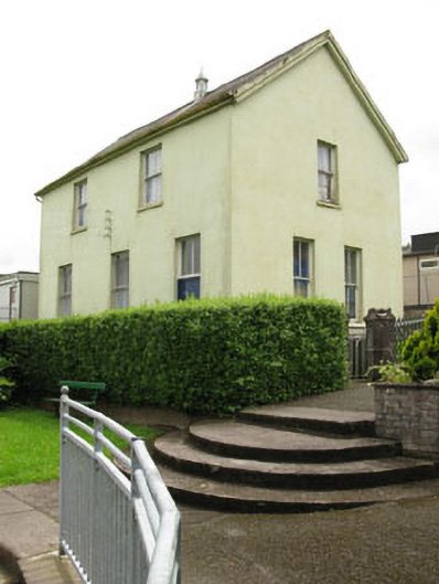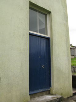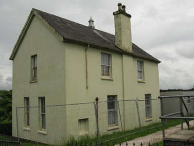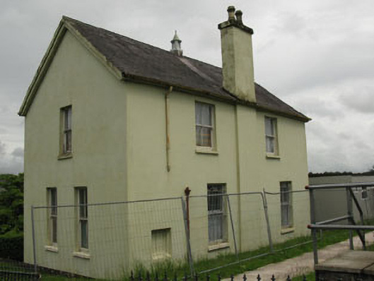 Detached three-bay two-storey school, built c.1900, now in use as outbuilding. Pitched slate roof with vent to ridge and cast-iron rainwater goods. Render walls. Square-headed window openings with render sills throughout, having two-over-two pane timber sliding sash windows. Square-headed door opening to front (north) elevation with double-leaf timber panelled door, margined overlight and limestone step. Set within recent school grounds.