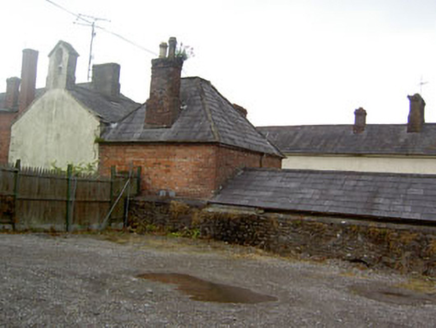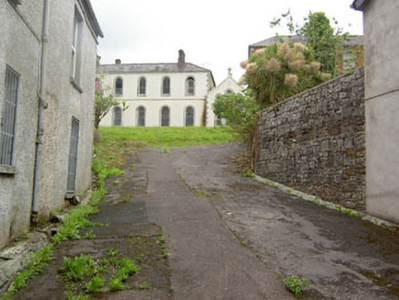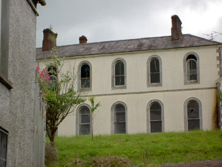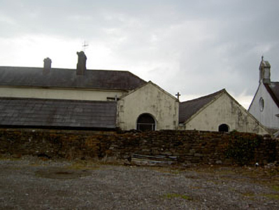 Attached seven-bay two-storey convent with gabled double-height end blocks, built c.1870, now disused. Hipped slate roof with rendered chimneystacks and cast-iron rainwater goods. Rendered walls with ashlar limestone quoins and string course between floors. Moulded eaves course. Round-headed opening with ashlar limestone dressings, having one-over-one pane timber sliding sash windows to first floor and two-over-one pane windows to ground floor.