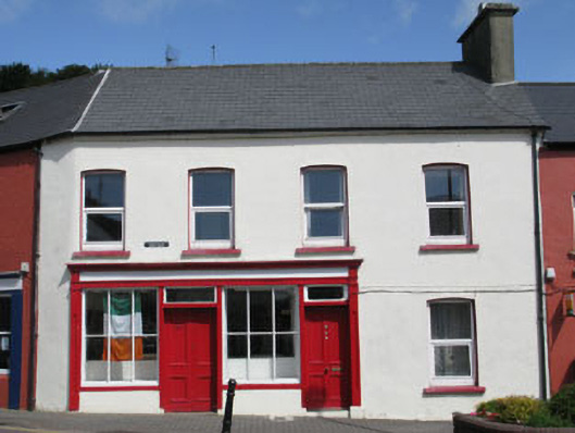 An attractive building located in The Square in Rosscarbery, at the centre of the town. Though it has lost some of its historic fabric, it nonetheless retains much of its historic character. The fine timber shopfront is a particularly noteworthy feature, and is a reminder of the quality of design and craftsmanship of shopfronts in the past. Its shares many characteristics with other buildings in the area and makes a fine contribution to the streetscape.