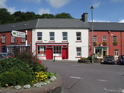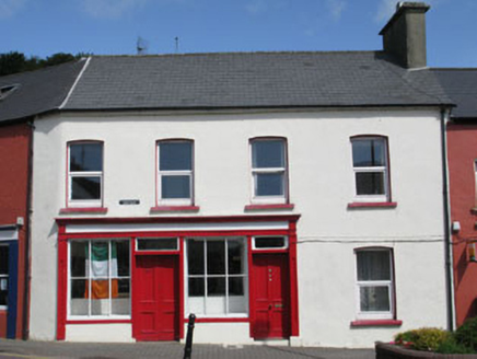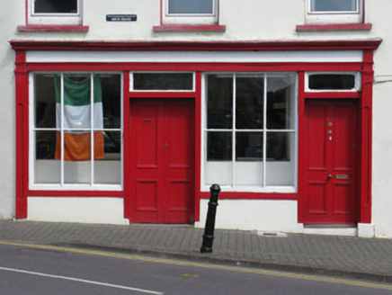Attached four-bay two-storey house, built c.1860, having timber shopfront to front (south) elevation. Currently vacant. Pitched slate roof having rendered chimneystack, eaves course and uPVC rainwater goods. Rendered walls throughout. Camber-headed window openings with render sills throughout, having uPVC casement windows. Timber shopfront with panelled pilasters, surmounted by architrave, frieze and moulded cornice. Square-headed display window with render sills and stall risers, having fixed six-pane timber-framed windows. Square-headed door openings with timber surrounds having panelled timber reveals and single- and double-leaf timber panelled doors with single-pane overlights. Fronting directly onto street.