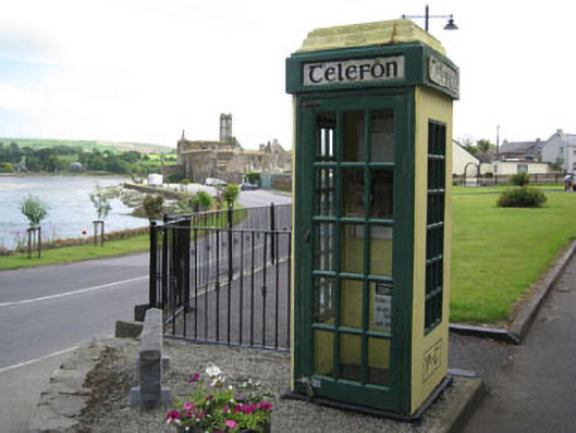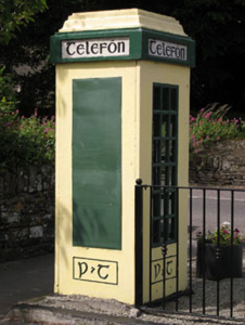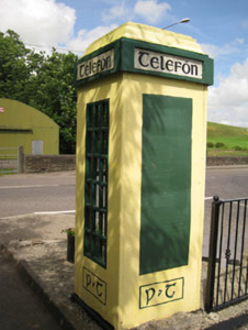 This telephone box, now purely ornamental and in the care of the Tidy Towns Committee, displays the post-independence insignia of the Department of Post and Telegraphs, which was brought in when the State established its own postal and telecommunications system. It forms an interesting and attractive feature in the streetscape.