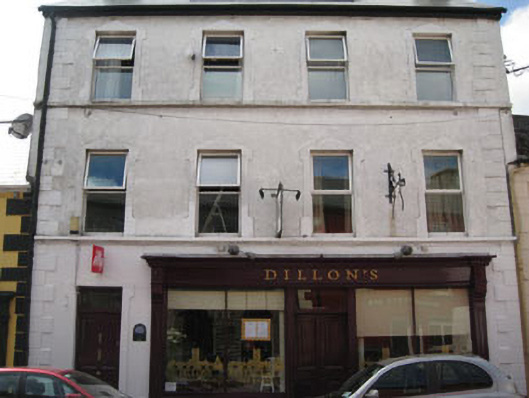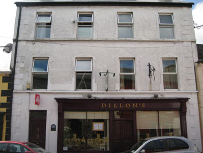 Terraced four-bay three-storey house, built c.1830, having timber shopfront to front (west) elevation. Now in use as restaurant. Pitched artificial slate roof with rendered chimneystacks and uPVC rainwater goods. Roughcast rendered walls having render quoins, render sill courses to first and second floors. Square-headed window openings with painted sills to front elevation, having moulded render surrounds and uPVC casement windows. Square-headed door opening with render surround to southern bay of front elevation, having replacement timber panelled door. Shopfront comprising pilasters with plinths and decorated consoles, surmounted by architrave, frieze and dentilated cornice. Square-headed window openings with stall risers flanking door opening, having fix two-pane timber framed display windows. Square-headed door opening with channelled pilaster to surround, having double-leaf timber panelled doors with overlight. Located on street front.