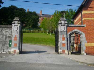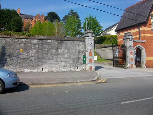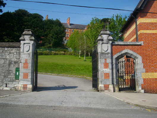 This elegant gateway forms the entrance to the Presentation Brothers at Mount St Joseph and displays the fine craftsmanship and attention to detail which is often associated with religious buildings. The use of red brick to the predominantly limestone piers hints at the red brick buildings which form the complex and also harmonizes with the red brick gate lodge. The entrance and boundary walls together make an eye-catching addition to the streetscape.