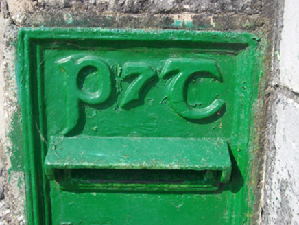 This cast-iron post box, which is still in use, is an attractive item of street furniture. The raised detailing, alluding to the Celtic Revival style, is of artistic interest, and is a reminder of the change in administration from British colonial power to the Irish Free State in the 1920s and 30s.