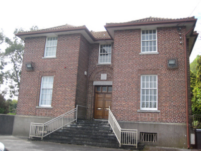 Detached U-plan three-bay two-storey over basement bishop's palace and diocesan office, built c.1930, with projecting end bays, seven-bay side elevation to south having full-height central canted bay, canted bay to west and single-storey return to north. Hipped pantiled roofs with projecting rendered eaves, brick chimneystacks and cast-iron rainwater goods. Red brick walls laid in English garden wall bond with smooth render to basement. Stepped brick parapet over southern canted bay. Square- headed window openings with concrete sills and eight-over-eight and eight-over-twelve (ground floor east elevation) timber sash windows. Four-over-four timber sash windows to sides of canted bay. Windows set in shallow recesses to ground floor having soldier laid brick lintels and clay tile window aprons. Wrought-iron guard rails to basement openings. Square-headed door opening to east set in shallow round headed recess formed by pilasters supporting archivolt with carved plaque to tympanum. Timber panelled double-leaf doors with leaded glass tripartite overlight and moulded lintel with interlace motif. Door accessed by limestone steps. Set in own grounds with entrance to south-east comprising smooth rendered square-profile gate piers with brick plat band to cast-iron gates