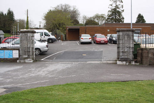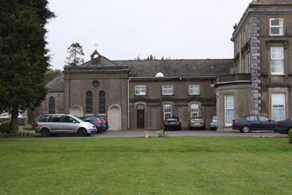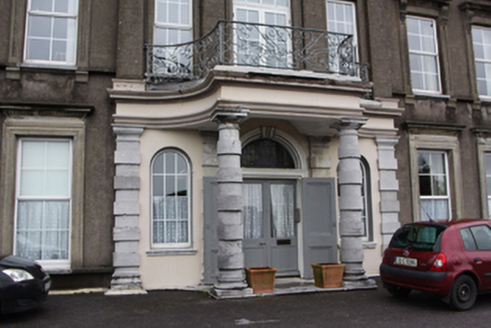 Detached nine-bay three-storey former country house, built 1765, with pedimented central breakfronts, central entrance porch, canted bay window to west and recessed L-plan two-storey wings to east and west. Now in use as residential care home with additions to north. Hipped slate roofs with laterally placed rendered chimney stacks to main block having ceramic pots and replacement rainwater goods. Some cast-iron downpipes surviving. Urn finials to south-west and south-east corners on rendered parapet. Smooth rendered walls with limestone egg and dart moulding with cornice above, rusticated limestone quoins and moulded render continuous sill courses to central block. Moulded render composite pilasters to breakfront supporting pediment with statue to apex. Carved limestone plaque depicting lion to breakfront. Continuous hood mouldings and platbands to wings. Square-headed window openings with moulded window surrounds, stone sills and uPVC windows. Dentilated canopies above ground floor windows, bracketed canopies above first floor windows with corbels beneath sills and rusticated keystones to second floor. Round-headed window openings flank main entrance door with stone sills and uPVC windows. Camber-headed window openings to wings recessed in niches with square-headed openings having moulded render surrounds to first floor. Single-storey entrance porch with banded limestone columns supporting concave curving entablature surmounted by wrought-iron railings and returning to limestone pilasters in walls. Square-headed door opening with moulded render architrave surmounted by stained glass fanlight with moulded render archivolt having keystone. Replacement timber-and-glazed double doors. Round-headed opening above porch with moulded render surround and uPVC doors. Interior with decorative plasterwork and mahogany staircase. Chapel building added to west wing and east wing extended to north, c.1950. Outbuildings to rear yard at north converted to multiple uses associated with the care centre and numerous later twentieth- century buildings located to grounds to immediate north of house. Pair of limestone rusticated piers located to the west, now giving access to swimming pool complex