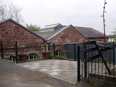 Detached double-height former waterworks building, built 1863, comprising gable-fronted single-bay former beam engine house with former boiler house and coal store set perpendicular to north. Lower advanced gable-fronted single-bay horizontal engine house added to east in 1868. Now in use as interpretative centre. Pitched slate roofs with monitor light, lead flashing to gables and cast-iron rainwater goods. Squared roughly coursed red sandstone walls with cast-iron wall ties, cut limestone pediments to front (south) gables, quoins, stringcourses and date plaque to west elevation. Round-headed window openings with alternating red sandstone and cut limestone voussoirs to south and east elevations, redbrick voussoirs to west elevation, continuous cut limestone sill courses and two-over-two and four-over-four with fanlight timber sliding sash windows. Segmental-headed door openings to ground floor accessed by limestone steps and having alternating red sandstone and cut limestone voussoirs to front elevation, red brick voussoirs to west elevation and double-leaf timber battened doors. Set within former water works site.