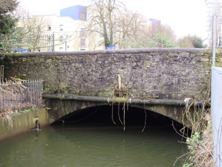 Single-arch road bridge, built c.1830, carrying road over Maglin River. Rubble coursed stone walls having cut limestone voussoirs to segmental arch and recent concrete coping to random coursed parapet.