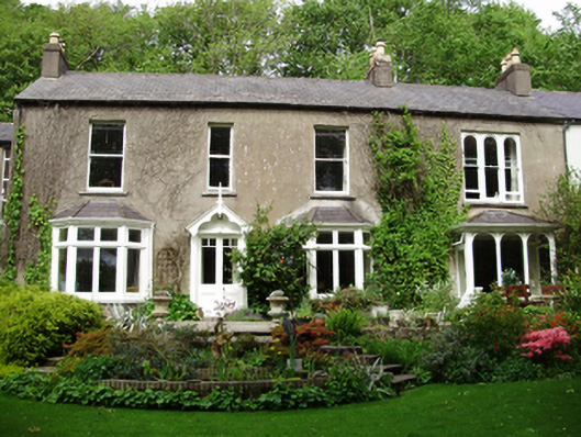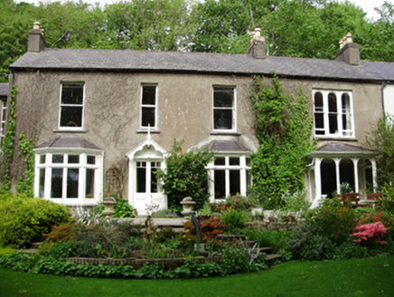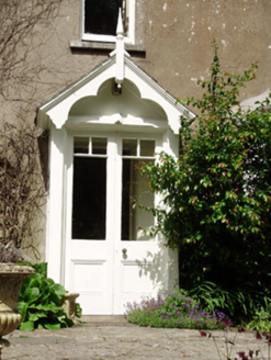 Attached four-bay two-storey house, built c.1850, having recessed two-bay two-storey entrance block to east, porch and canted and box bay windows to ground floor. Pitched slate roof with rendered chimneystacks, timber bargeboards with finial to porch and cast-iron rainwater goods. Rendered walls. Square-headed window openings with cut limestone sills and one-over-one timber sliding sash windows to first floor with timber casement windows to ground floor. Round-headed stairwell window to entrance block having stained glass window. Square-headed door opening with double-leaf half-glazed timber door. Segmental-headed street entrance to north elevation having render surround incorporating cornice to double-leaf half-glazed timber door with leaded stained glass overlight.