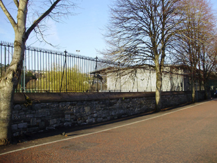 A fine boundary surrounding the UCC sports grounds which is a reminder of the quality of railings and walls in the past. The limestone contrasts with the red brick, adding colour and textural interest, while the excellently turned wrought-railings and gates demonstrate high quality craftsmanship.