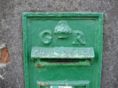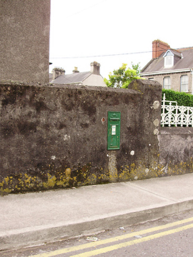 This cast-iron post box forms an attractive addition to the streetscape. The insignia demonstrates the artistic qualities of mass production at the time of its casting. Such post boxes are becoming increasingly rare and are now often replaced by plastic boxes. It was erected during the reign of George V (1910-1921) and is a reminder of Ireland's colonial past.