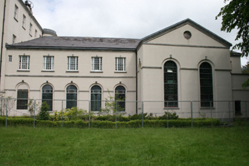Attached T-plan chapel, built 1824-5, with four-bay double-height nave and single-bay transept to east. Now disused. Pitched slate roof to nave with hipped roof to and cast-iron rainwater goods. Lined-and-ruled smooth rendered walls with stone plinth, string course and cornice. Limestone ashlar walls to pedimented north elevation having Ionic pilasters supporting pediment with recessed panel and roundel, urn finials to ends and limestone cross to apex. Round-headed statue niches with fonts to ground floor and round-headed statue niches with fluted half-domes to first floor level. Smooth rendered south elevation with pediment having louvered roundel to tympanum. Round-headed window openings set in recessed round-headed panels with stone sills, keystones to arches and stained glass windows. Round-headed window opening to north elevation flanked by fluted Ionic pilasters, supported on a pair of console brackets with architrave and keystone above and round-headed stained glass window. Square-headed door opening with limestone architrave and entablature above timber panelled door. Blind recessed panel to north elevation of eastern transept with blocked opening to external ornamental cast-iron spiral stairs. Interior with decorative ceiling, altar to south with Corinthian columns supporting canopy, choir and organ gallery to north with timber balustrade and tiled floor. Attached to east elevation of Ursuline Convent.