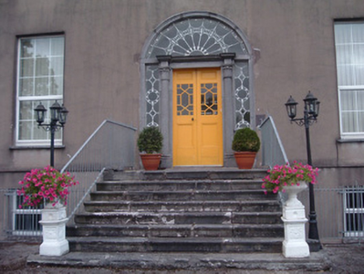 This early nineteenth-century country house is notable for its elaborate doorcase, wit its especially fine fanlight. Some timber sliding sash windows survive and these and the entrance steps enhance the building. The group, comprising house, associated gate lodges and outbuildings and limestone ashlar gate piers, is pleasantly located on an upland site recessed from the road and approached by a tree-lined avenue.