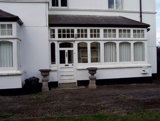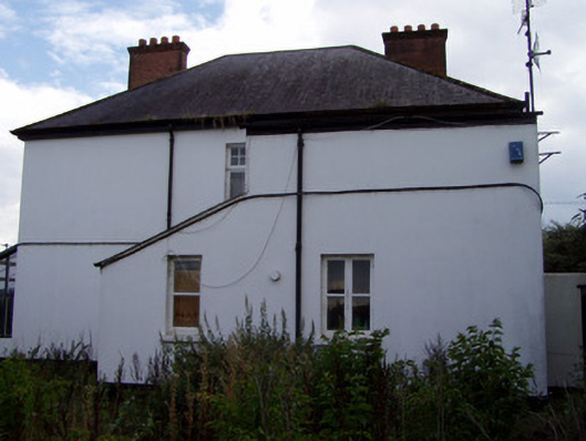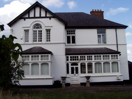 Detached L-plan three-bay two-storey house, built c. 1880, facing south, having projecting gabled west end bay with box-bay window, slightly recessed porch to front of most of rest of façade, conservatory to east gable, and single-storey addition to rear with single-storey lean-to to its east. Hipped slate roof with brick chimneystacks. Slate roofs, hipped to bay window and porch, pitched to gabled bay and flat and lean-to roof to addition. Painted rendered walls with false timber truss to gabled bay and moulded render sill course to first floor. Venetian-style window to first floor of gabled bay, having moulded render cornice and ten-pane timber casement windows, middle light being double with fanlight. Square-headed window openings elsewhere to first floor, with timber casement windows having eight-pane overlights to timber double casement windows. Bay window comprises three segmental-headed lights with six-pane overlights. Ground floor windows to rear are one-over-one pane fixed timber and double timber casements. Porch comprises glazed timber sides on rendered plinth walls and having segmental-headed lights with six-pane overlights and square-headed half-glazed timber panelled door and limestone threshold. Tiles with geometric pattern to porch interior. Conservatory has glazed timber sides on rendered plinth walls. Remains of coursed rubble limestone boundary walls to site.