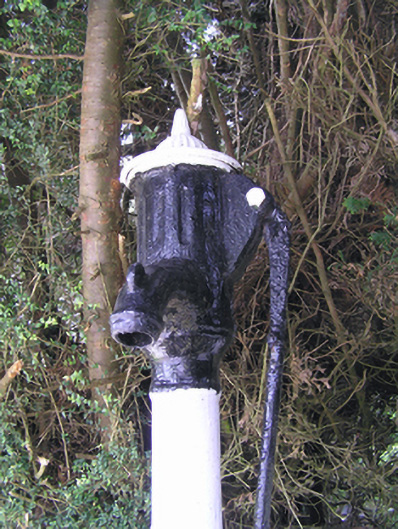 Attractive cast-iron water pump located in its original position on the roadside in rural area, which would have once acted as a communal water source to local householders. The banding and fluting are well executed and, along with the elegantly curved handle, add artistic interest to this utilitarian object.