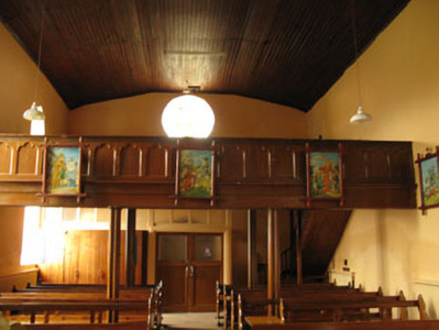 The front facade of this church is unusually ornate for a simple rural barn-style church. The facade retains many fine features such as the ornate pinnacles, bellcote and blind niches. The original doors and nave windows further enhance the appearance and importance of the building. Internally the carved timber gallery is of note, displaying the work of skilled craftsmen.