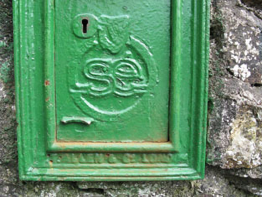 This cast-iron post box which is still in use is an excellent example of mass produced early twentieth century cast-iron work. The raised Saorstat Eireann (Irish Free state) motif is an important reminder of the changes that were made in post box design to signify Ireland's independence from Britain.