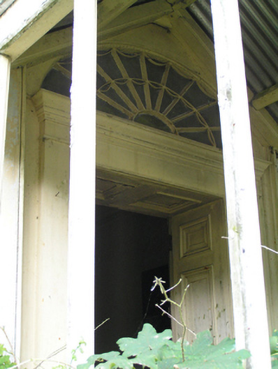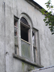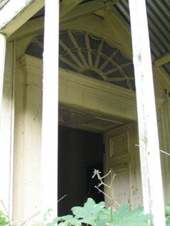 Imposing silhouette with large chimneystacks visible. Large example of symmetrical classically inspired Irish country house. Plain unadorned façade, with central emphasis by round-headed door opening and Venetian window. Although in poor repair and having lost much fabric, retains overall form and scale.