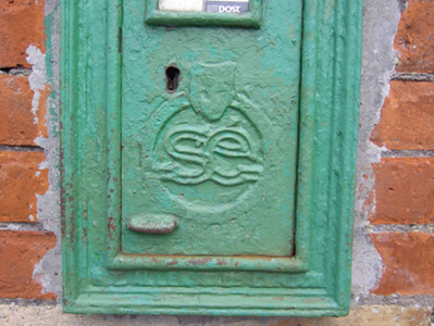 A "wall box" post box supplied by W.T. Allen and Company (fl. 1881-1955) of London representing an interesting example of mass-produced cast-iron work making a pleasing, if largely inconspicuous visual statement in a suburban street scene with embellishments identifying the artistic potential of the composition including not only the King Edward VII (1841-1910; r. 1901-10) royal cipher of additional significance as an imprinted reminder of the period when Ireland formed part of the British Empire, but also, in a curious juxtaposition, the Saorstát Éireann emblem adopted (1928) by the Irish Free State (fl. 1922-37) following Independence (1922).