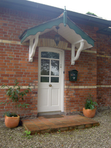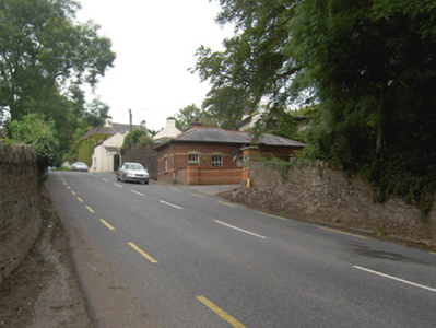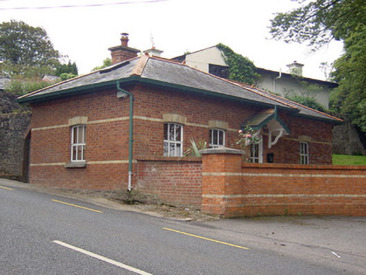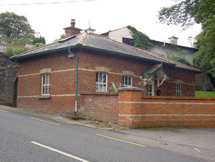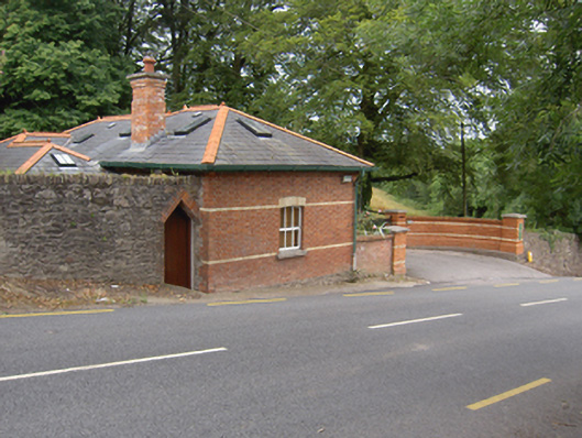 Detached four-bay single-storey former gate lodge, built c. 1900, having pitched entrance canopy to front (north) elevation, recessed end bay to west and single storey extension to rear (south). Now in use as house. Hipped slate roof with terracotta ridge tiles, red brick chimneystack and rooflights. Pitched slate roof to entrance canopy with terracotta ridge times and carved timber bargeboards. Red brick walls with yellow brick stringcourse and sill course. Camber-arched window openings with cut limestone sills, yellow brick voussoirs and timber casement windows. Camber-arched door opening with yellow brick voussoirs and timber panelled half-glazed door. Red brick sweep walls and piers, having yellow brick string courses. Former rectory to north-west.