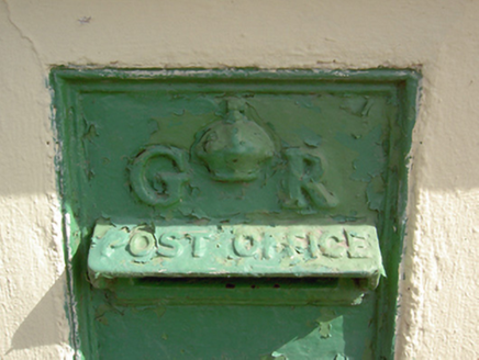 Finely crafted post-box produced during the short rein of George IV. Relatively few of these post-boxes were produced, and fewer still survive in the countryside. Together with Cobh Junction Station, it forms one of a pleasant and practical grouping of public amenities in the landscape.