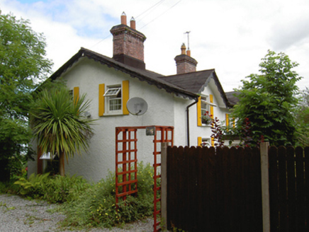 Detached three-bay two-storey former station master's house, built 1862, with gablets to outer bays to front (east) elevation, flat-roofed single-storey single-bay porch to front and multiple-bay single- and two-storey extensions to north and rear (west) elevations. Now in use as house. Possibly incorporating fabric of earlier dwelling. Pitched slate roof with carved timber bargeboards and red brick chimneystacks. Roughcast rendered walls. Square-headed openings with render surrounds, timber battened external shutters and replacement uPVC windows. Square-headed door opening to porch with replacement uPVC door.
