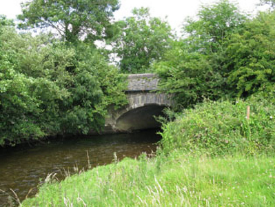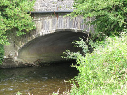 Single-arch road bridge, built c.1820, spanning the River Bride. Segmental-headed arch with dressed limestone voussoirs and rendered soffit. Rubble limestone spandrels and parapets with rendered coping.