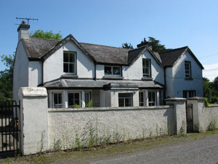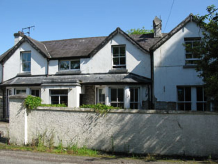Detached four-bay two-storey house, built c.1900, having gabled bays with canted bay windows flanked projecting flat-roofed porch and with gable-fronted projecting end-bay. Pitched slate roof with rendered chimneystacks and cast-iron rainwater goods. Rendered walls with exposed rubble stone in places. Square-headed window openings with render sills having two-over-two pane timber sliding sash windows. Timber casement windows to first floor of central-bay and front elevation of porch. Bipartite timber-framed window to projecting end-bay, having two-over-two pane timber sliding sash windows. Square-headed door opening to porch, having timber battened door. Single-storey outbuildings to west of site having pitched slate and corrugated-iron roofs, rendered walls and square-headed window openings with replacement two-over-two pane timber sliding sash widows. Roughcast rendered boundary wall to front of site with square-profile piers having render capping stones, cast-iron pedestrian gate and wrought-iron vehicle gate. Set back from road within own grounds.