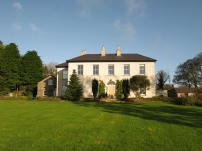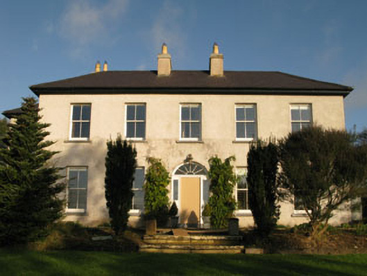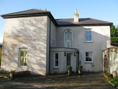 Detached L-plan five-bay two-storey country house, built c.1860, having recent porch to rear (north). Two-storey historic addition to side (west) of return. Replacement hipped slate roof with timber clad eaves course, rendered chimneystacks and cast-iron and replacement uPVC rainwater goods. Roughcast rendered walls, having moulded render cornicing to porch. Square-headed window openings with replacement limestone sills throughout, having replacement two-over-two pane timber sliding sash windows. One-over-one pane timber sliding sash window to porch. Round-headed stairwell window opening with replacement limestone sill to side (east) elevation of return, having margined six-over-nine pane timber sliding sash window with fanlight to upper sash. Round-headed door opening with limestone stepped approach to front elevation, having blocked opening flanked by replacement glazed timber side panels and surmounted by spoked overlight. Square-headed door opening to porch having glazed timber door. Located within own grounds.