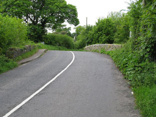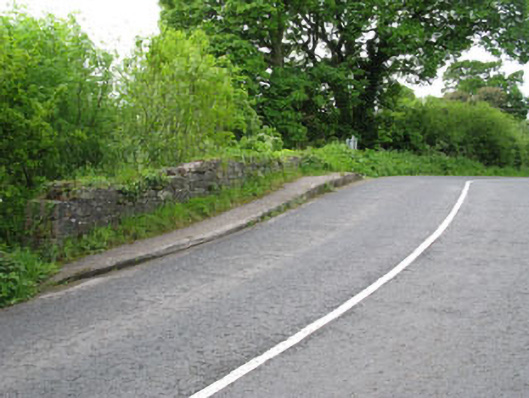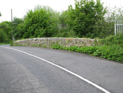 Single-arch limestone bridge, built c.1845, carrying road over railway line. Roughly coursed limestone parapet walls with tooled limestone coping and quoins