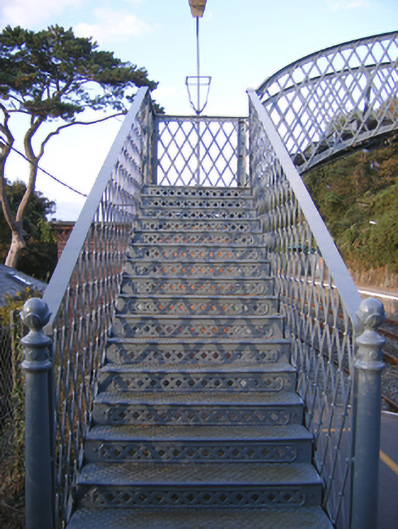 This pedestrian bridge displays a high degree of craftsmanship, adds artistic interest to its site and offers a counterpoint to the red brick structure of the railway station. It forms a group with related station and outbuilding.