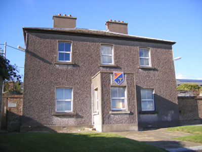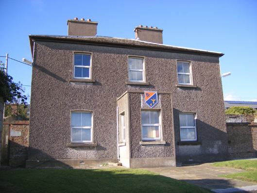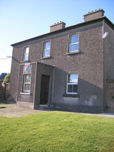 Detached L-plan three-bay single-storey hall, built c. 1870, now disused. Pitched slate roof with roof vents and red brick chimneystack. Roughcast rendered walls with red brick quoins and dressings to openings. Camber-headed openings having limestone sills and timber casement windows. Camber-headed door opening with timber matchboard door, overlight and limestone threshold.