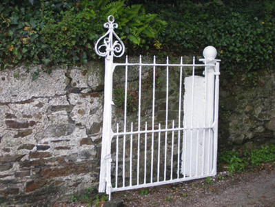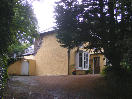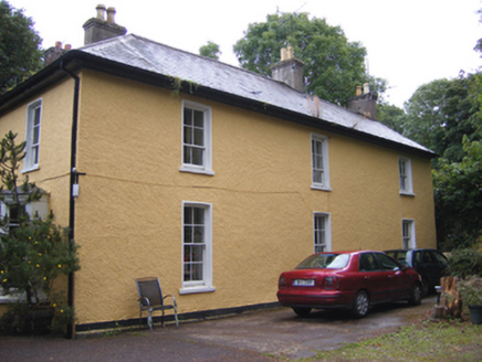Detached three-bay two-storey house, built c. 1840, with single-bay single-storey flat-roofed porch and canted bay windows to front (north) elevation. Three-bay west elevation and two-bay two-storey pitched-roofed block to rear (south). Hipped slate roof with rendered chimneystacks, overhanging eaves and timber eaves course. Timber cornices to bay windows. Roughcast rendered walls with render plinth course. Square-headed openings with render surrounds, four-over-two pane timber sliding sash windows to first floor and four-over-four to ground floor. Square-headed openings to bay windows with continuous sills and two-over-two pane timber sliding sash windows flanked by chamfered pilasters. Square-headed opening to porch with tripartite flat-arched one-over-one pane flanked by round-headed one-over-one pane timber sliding sash window. Square-headed opening to west elevation of porch with bipartite flat arched one-over-one pane timber sliding sash window. Square-headed openings to rear block with one-over-one pane timber sliding sash windows. Square-headed opening to east elevation of porch with timber panelled half-glazed door. Cast-iron piers to entrance with ball finial and wrought-iron gate.