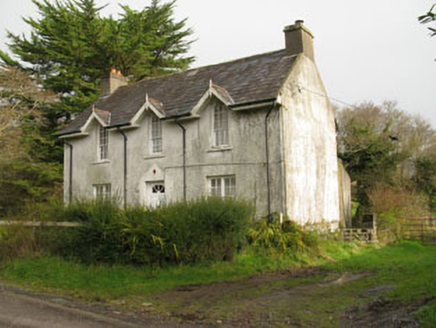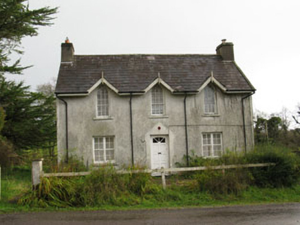 Detached three-bay two-storey former gate lodge, built c.1880, having lean-to extension to rear. Now in use as private house. Pitched slate roof with gabled dormers and rendered chimneystacks. Roughcast rendered wall to front (west) elevation with rendered walls elsewhere. Pointed arch window openings with cut limestone sills, having intersecting Y-timber tracery to first floor windows, bipartite four-over-four pane timber sliding sash windows to ground floor. Square-headed door opening with rendered surround and timber panelled door. Square-profile roughcast rendered piers with double-leaf wrought-iron gates to front of site.