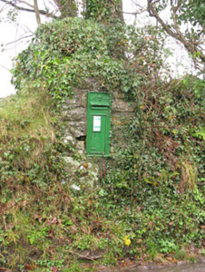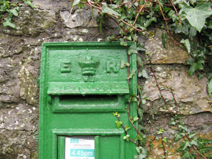This early twentieth-century poast box is of a simple design, its insignia and crown a reminder of the Edwardian period in Ireland. This post box is set in a pier at a prominent crossroads and remains in use.