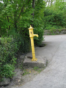 This is an attractive cast-iron water pump located in the centre of Tracton village. It would once have acted as a communal water source. The banding and fluting are well-executed as is the elegantly curved handle, and these add artistic interest to an otherwise utilitarian object.