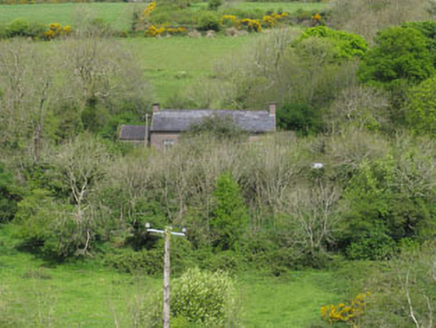 Detached formerly T-plan five-bay two-storey house with dormer attic, dated 1771, having pitched roof two-storey flanking bays to sides (east, west). Later lean-to extensions to rear and pitched roof porch to front. Pitched slate roofs with rendered chimneystacks and cast-iron and uPVC rainwater goods. Rendered walls throughout having tooled limestone plaque over porch door opening. Rubble stone walls to side elevations of extensions and rear elevation. Square-headed window openings with stone sills throughout, having replacement uPVC windows to front elevation. Six-over-six pane and one-over-one pane timber sliding sash windows elsewhere. Square-headed door opening to porch having replacement sidelights, overlight and timber panelled door. Ruinous outbuildings to rear and sides having round-headed carriage arch to rear. Ruinous tower house to north. Set within own grounds.