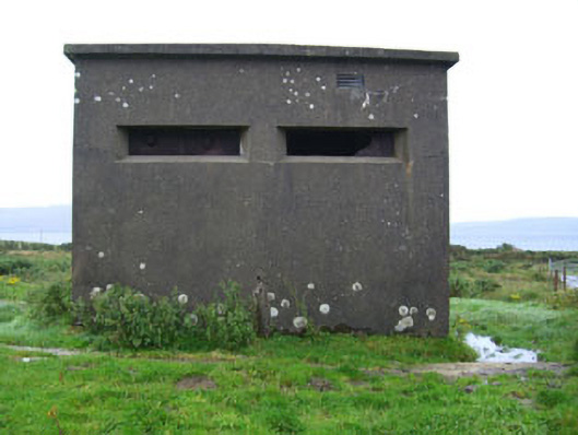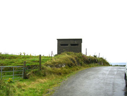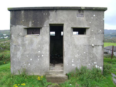 Detached three-bay single-storey pill box, built c.1915, now disused. Flat overhanging rendered roof. Rendered walls. Square-headed splayed openings with corrugated-iron interior shutters. Square-headed door opening with rendered steps.