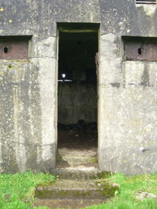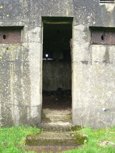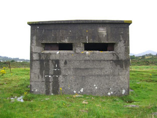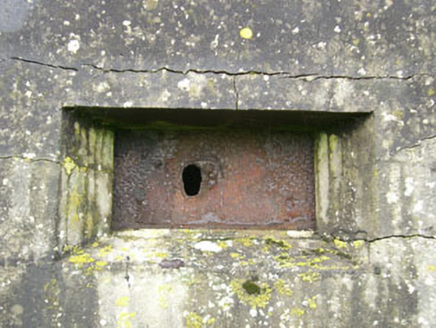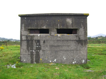 Detached three-bay single-storey pill box, built c.1915, now disused. Flat overhanging rendered roof. Rendered walls. Square-headed splayed openings with corrugated-iron interior shutters. Square-headed door opening with rendered steps.
