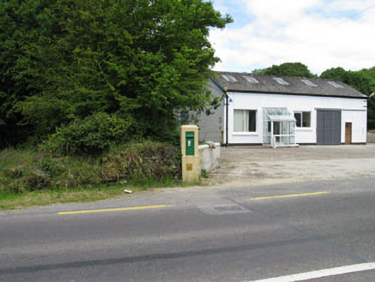 Wall-mounted cast-iron post box, installed c.1930, with raised lettering. Set into rendered gate pier.