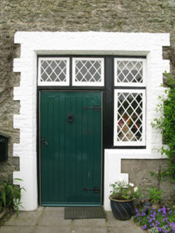 Designed by Thomas Cundy, this former estate worker's house is one of eight built in a picturesque group at the main entrance to Coolmore House. This group, along with other demesne buildings, is a reminder of the scale and wealth of the demesne in the past. It was occupied by the estate carpenter in 1850. The slate roofs, delightful chimneystacks, quarry glazed windows and timber battened doors are among the many original features which add to the group's character.