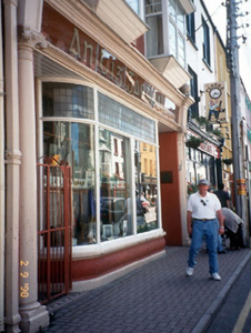 Terraced three-bay three-storey Queen Anne Revival style building, dated 1924, with render pilaster pubfront to ground floor having Ionic pilasters, bowed display window, panelled consoles, glazed fascia, moulded cornice, single-storey box oriel windows to first floor and render façade enrichments to upper floors. Pitched artificial slate roof with cemented gable parapets, render chimneystacks, replacement gutter and square cast-iron downpipes. Roughcast rendered walls with rusticated render quoins, decorative panel to centre of first floor, and cornice to eaves with raised balustraded centrepiece having segmental date plaque over. Oriels at first floor with sprocketted roofs. Moulded reveals at second floor with profiled sills and hood mouldings. Replacement uPVC windows to upper floor. Street frontage.