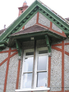 A substantial Edwardian style house with a pair of distinctive bays. This house has a much embellished façade which is still in good condition. The use of many materials in addition to the large landscaped site make this house a good example of a well-to-do suburban house from the end of the nineteenth century.