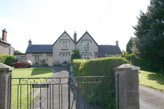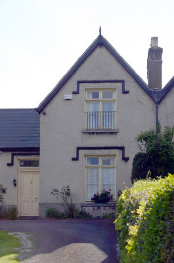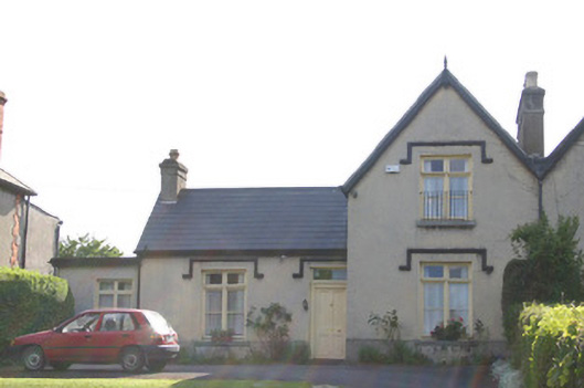 Semi-detached three-bay single- and two-storey rendered house, built c. 1875, forming a largely symmetrical composition with neighbouring house, having paired single-bay two-storey gabled breakfronts and shared chimneystack to valley. Prolonged to south by single-storey flat-roofed extension. Original single-bay two-storey gabled return. Gabled artificial slate roof to two-storey and single-storey section, each running perpendicularly. Two rendered chimneystacks with stringcourses and octagonal and square-plan moulded clay pots, one to party wall shared. uPVC rainwater goods. Roughcast rendered walls with smooth rendered plinth. Square-headed window openings with rendered label-stops, patent rendered reveals, limestone sills and mullioned timber casement windows with cylinder glass surviving. Square-headed door opening with rendered label-stop, limestone threshold step and timber doorcase comprising flat-panelled uprights joined by profiled timber lintel, timber door with stop-chamfer detailing and raised flat panels with overlight. Large front site enclosed from road by rendered wall and piers with mild steel gates. Enclosed to sides by hedging.