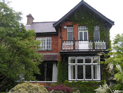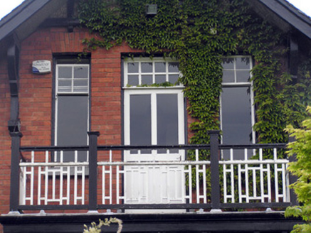 Detached two-bay two-storey red brick house, built c. 1920, facing south with a gabled breakfront axial with gabled return to rear, prolonged by single-bay extension, c. 1960. Glazed conservatory to west side elevation, c. 1980. Pitched M-profile natural slate roof, with intersecting gables roofs. Pebbledash rendered chimneystacks, two to apex of gables with stepped brick capping, rendered flaunchings and plain clay pots. Profiled cast-iron rainwater goods to façade, and uPVC to remaining elevations. Red brick façade laid in stretcher bond. Pebbledash rendered gable wall with timber studs rising from bressumer. Pebbledash rendered side and rear elevations. Square-headed window openings red brick flat arches and reveals to front elevation, rendered reveals to side and rear elevation, limestone sills throughout, and tripartite six-pane timber casement window, and replacement timber and uPVC casements to side and rear elevation. Single-pane casements with five-pane overlights, separated by mullion and transom to bay window. Roof of bay window forms balcony enclosed by timber parapet. Square-headed door opening flanked by sidelights, each opening having red brick flat arch and reveals, with glazed timber door leaf and elongated four-over-two timber sash sidelight windows. Original verandah with timber bracketed verticals supporting lean-to roof structure. Verandah now enclosed by low plinth wall and glazing. Flat-roofed porch to side elevation with casement sidelight, and square-headed door opening having rendered reveals and flat-panelled timber door. Site enclosed by rendered boundary wall with rock-faced limestone piers with capping stone with lettering reading: RHORKEE. Piers supporting wrought-iron gates.