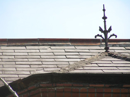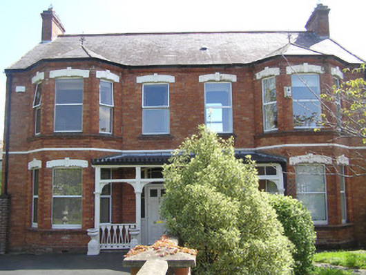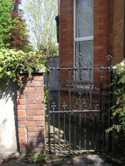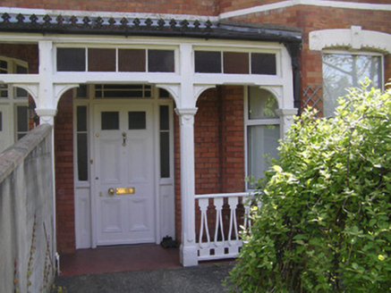 Semi-detached two-bay two-storey red brick house, built c. 1910, facing west with a three-sided two-storey canted bay window, and a two-storey return built against neighbouring return. Single-storey extension to rear. Gabled natural slate roof with three-sided slate hip over bay window, terracotta ridge tiles, and a wrought-iron finial to apex of bay roof. Hipped return roof with red brick chimneystack to apex of gable, having dog-tooth cornice, and red brick chimneystack, shared with neighbouring house, to return. Cast-iron gutter on moulded red brick eaves, and cast-iron downpipe. Roof lights to rear span. Red brick faced front elevation laid in English garden wall bond, with moulded red brick plinth course, and yellow brick stringcourse at first floor level. Smooth rendered side and rear elevation with red brick quoining to northeast corner. Camber-arched window openings to front elevation with pre-cast notch and keystone detailed lintels, red brick reveals and canted red brick sills surrounding uPVC windows. Square-headed window openings elsewhere with rendered reveals, sills and uPVC windows. Slate lean-to porch roof supported on bracketed timber uprights with stop-chamfer detailing, shared with neighbouring house, gives access to front door. Glazed panelling and timber balustrade joins timber shafts. Segmental-arched front door opening, with red brick arch and reveals, and flush timber doorframe comprising two-pane frosted side lights over panelled timber bases, tripartite coloured glass margin-paned overlight and flat-panelled timber door with glazed upper panels and brass door furniture. Cast-iron cresting to porch roof. Front site enclosed by rendered wall with wrought-iron railings, terminating with pair of piers supporting modern timber pedestrian gate. Gated lane to side gives access to rear sites. Plank timber vehicular gates on flank boundary wall on rollers gives access to front site from lane. Wrought-iron pedestrian gate gives access to rear front site.